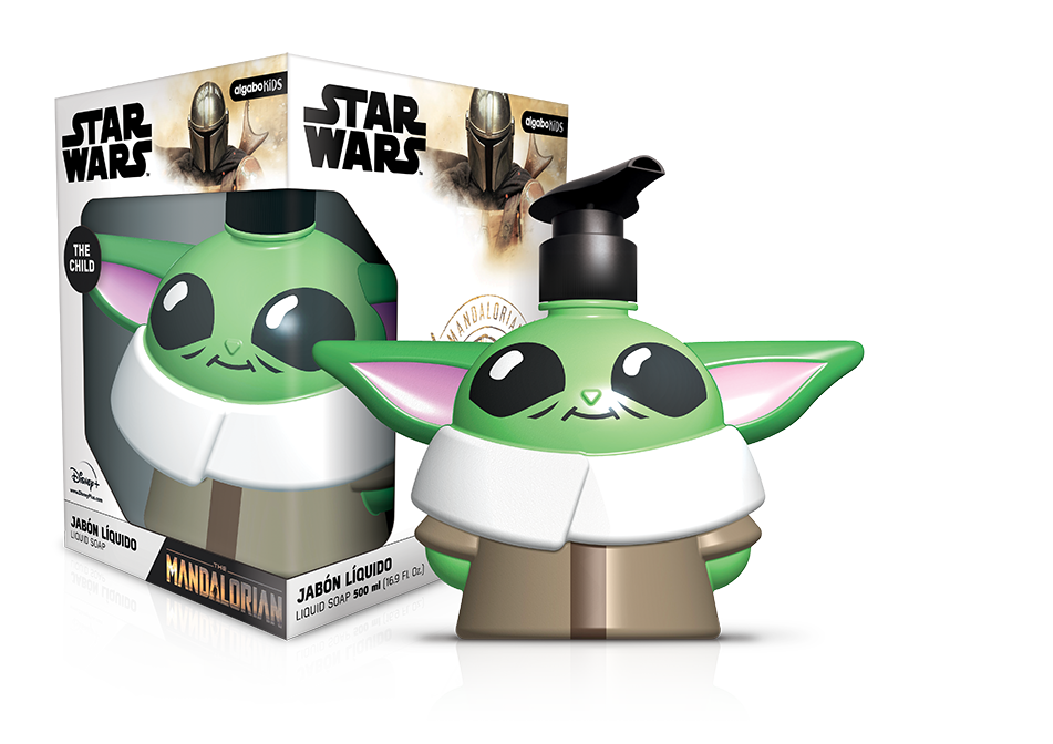 - Star Wars Baby Yoda jabón líquido – Es un jabón líquido en un envase 3D de Grogu de Mandalorian con una exquisita fragancia a chicle para que lavarse las manos sea una aventura galáctica. El envase es recargable y viene en un estuche especial para regalo. Además de ser hipoalergénico, no tiene propilenglicol, ni siliconas ni parabenos.